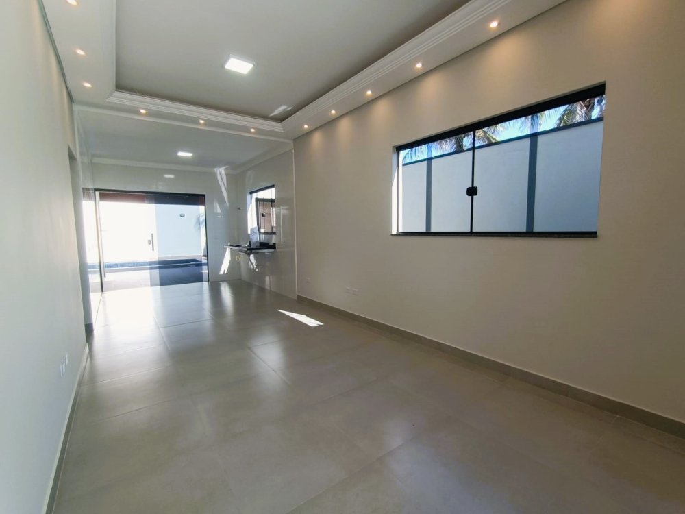 - Sala com pé direito alto, sanca de gesso e luz de led