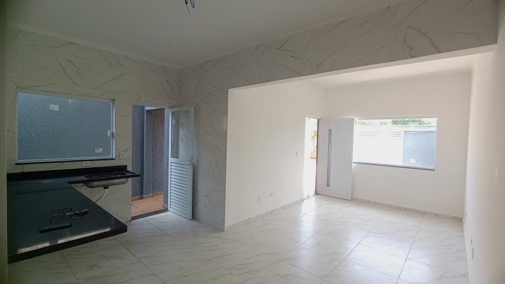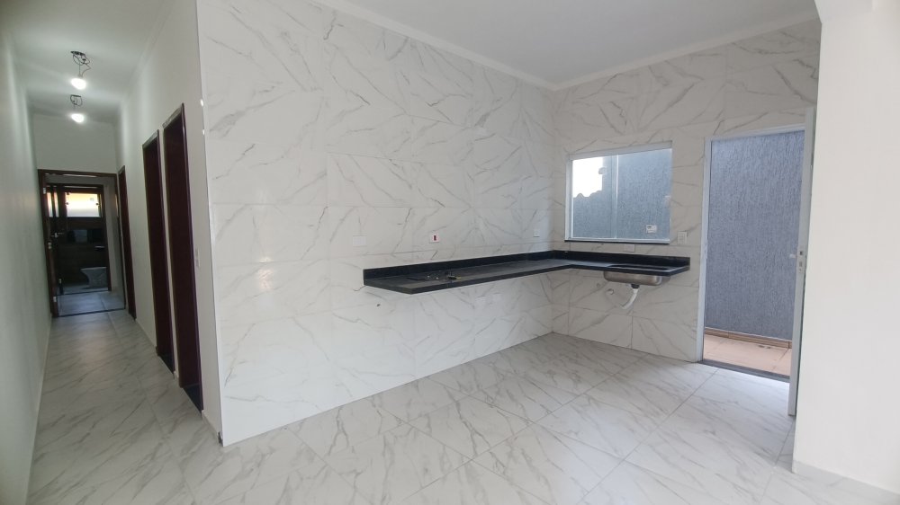 Casa com 3 quartos, sendo 1 suíte, 1 banheiro social, sala e cozinha integradas, área de serviço coberta, corredor lateral, vaga para 2 carros, sendo 1 coberta, espaço gourmet completo com linda piscina.