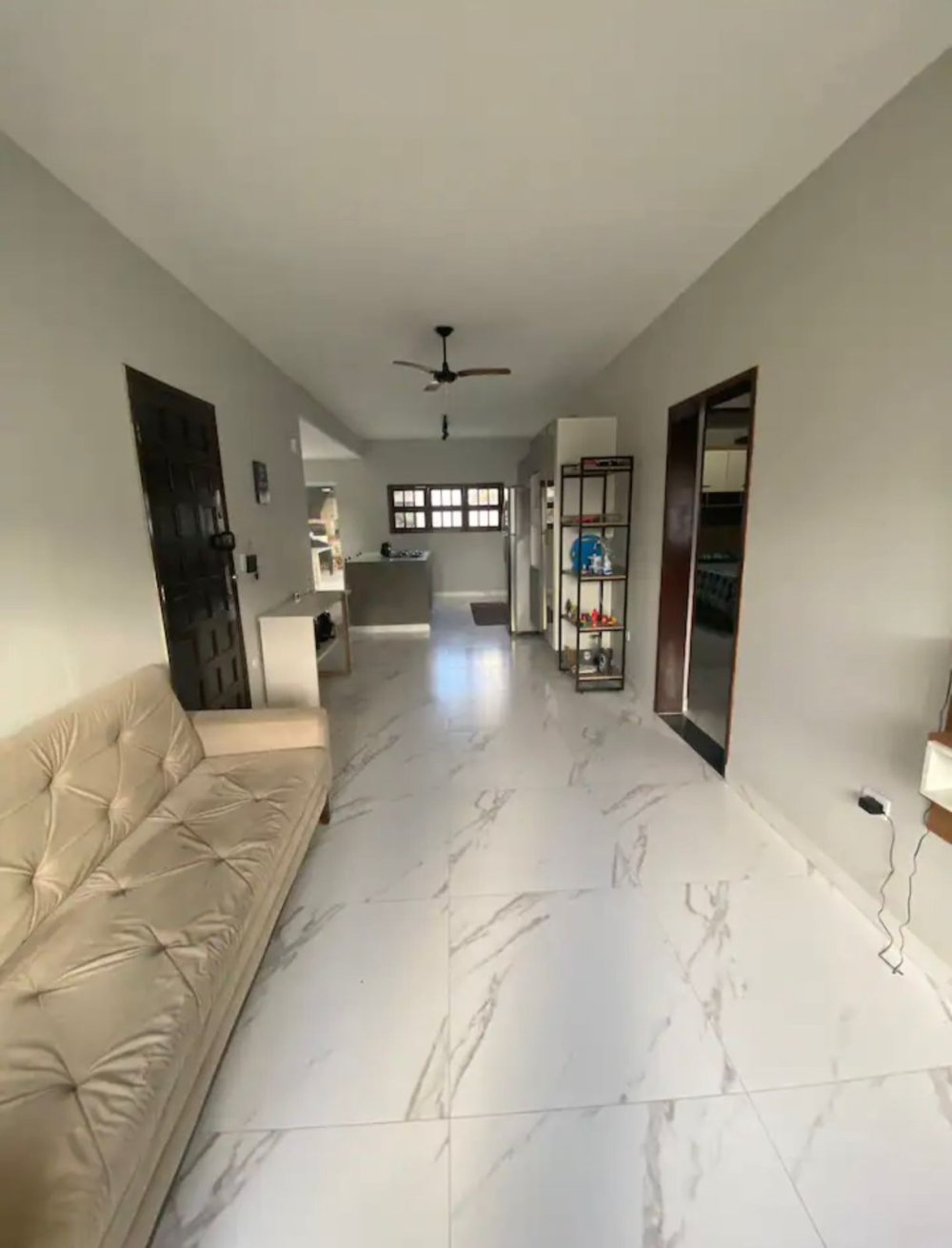Ventilador de teto na parte interna da casa.