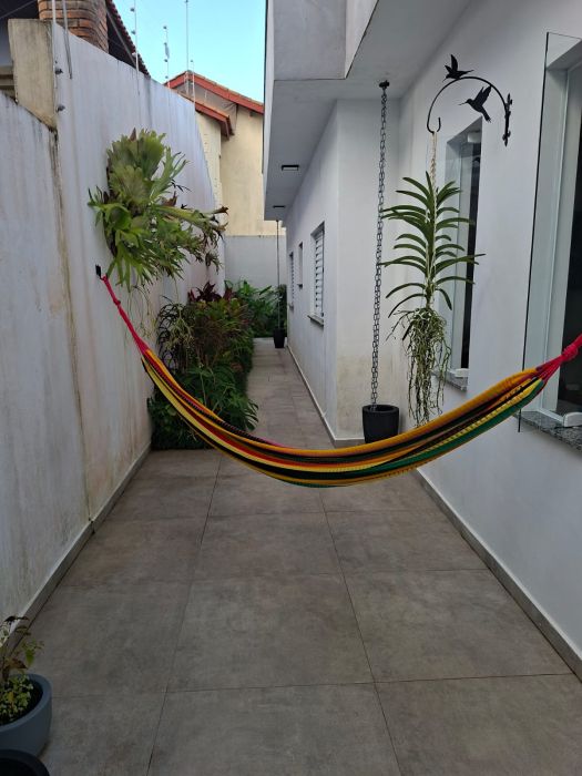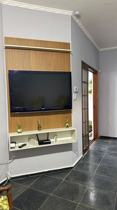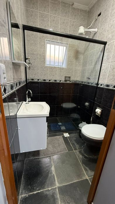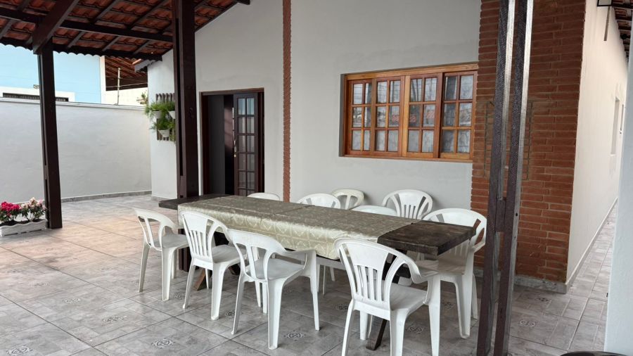 Casa possui 2dormitórios sendo 1 suite, 3 banheiros e vaga para 5 veículos na garagem.
