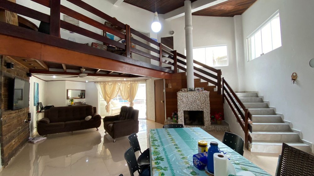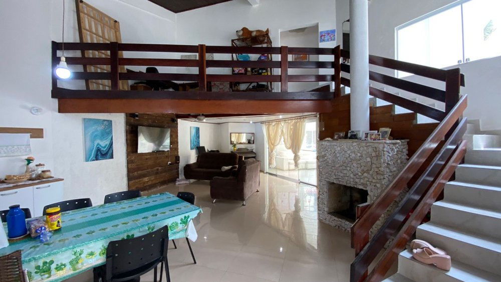 Além das características de lazer, a casa possui infraestrutura de alta qualidade, como piso porcelanato, móveis planejados, lareira e gabinetes na cozinha. O pé direito duplo cria um ambiente arejado e sofisticado, e a edícula oferece um espaço extra para diversos usos. Os corredores laterais e a despensa proporcionam maior organização e praticidade. A segurança é garantida com cerca elétrica, sistema de alarme e ventilador de teto em diversos ambientes.