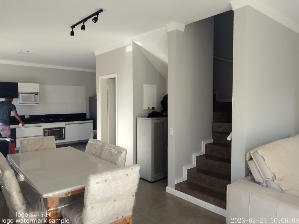 Espaço térreo bem espaçoso integrando cozinha, sala de jantar e sala de estar.